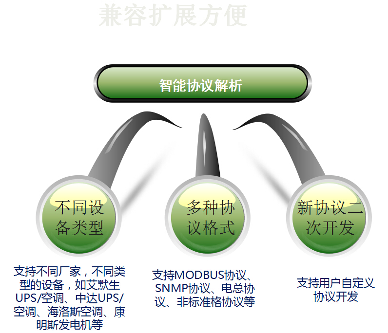 動(dòng)力環(huán)境監(jiān)控系統(tǒng)充分利用了機(jī)房?jī)?nèi)傳輸設(shè)備所能提供的各種傳輸信道資源,實(shí)現(xiàn)機(jī)房?jī)?nèi)各項(xiàng)告警和數(shù)據(jù)快速有效的上傳,同時(shí)由監(jiān)控中心軟件進(jìn)行圖形化人機(jī)界面展示,可對(duì)所有機(jī)房的全參數(shù)、全方位的監(jiān)控,智能化短信外呼報(bào)警,實(shí)時(shí)事件記錄,提高用戶的維護(hù)管理效率,實(shí)現(xiàn)機(jī)房可靠的科學(xué)管理。